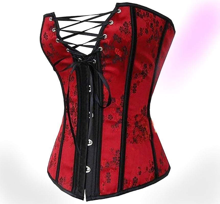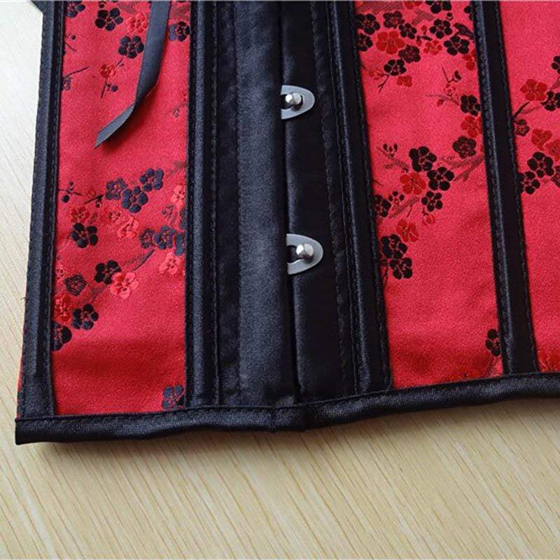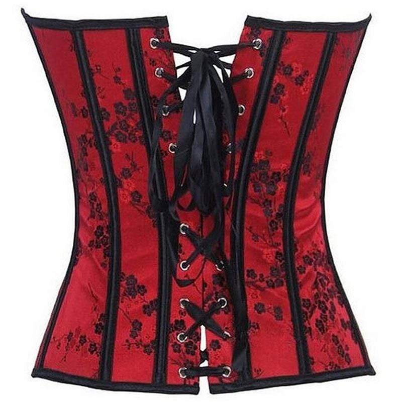 This corset is made of Polyester and Spandex. Adored with floral patterns and a red cloth material, it makes for a rosy experience along with a sophesticated one!