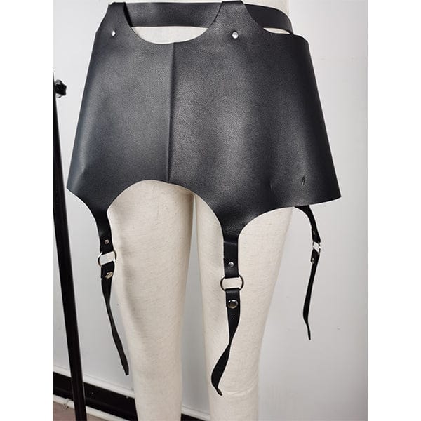 Dominight Waist Harness & Mask cuz you're trouble. This waist harness has a vegan leather construction, an O-ring connection, and a buckle closure for size adjustment.
