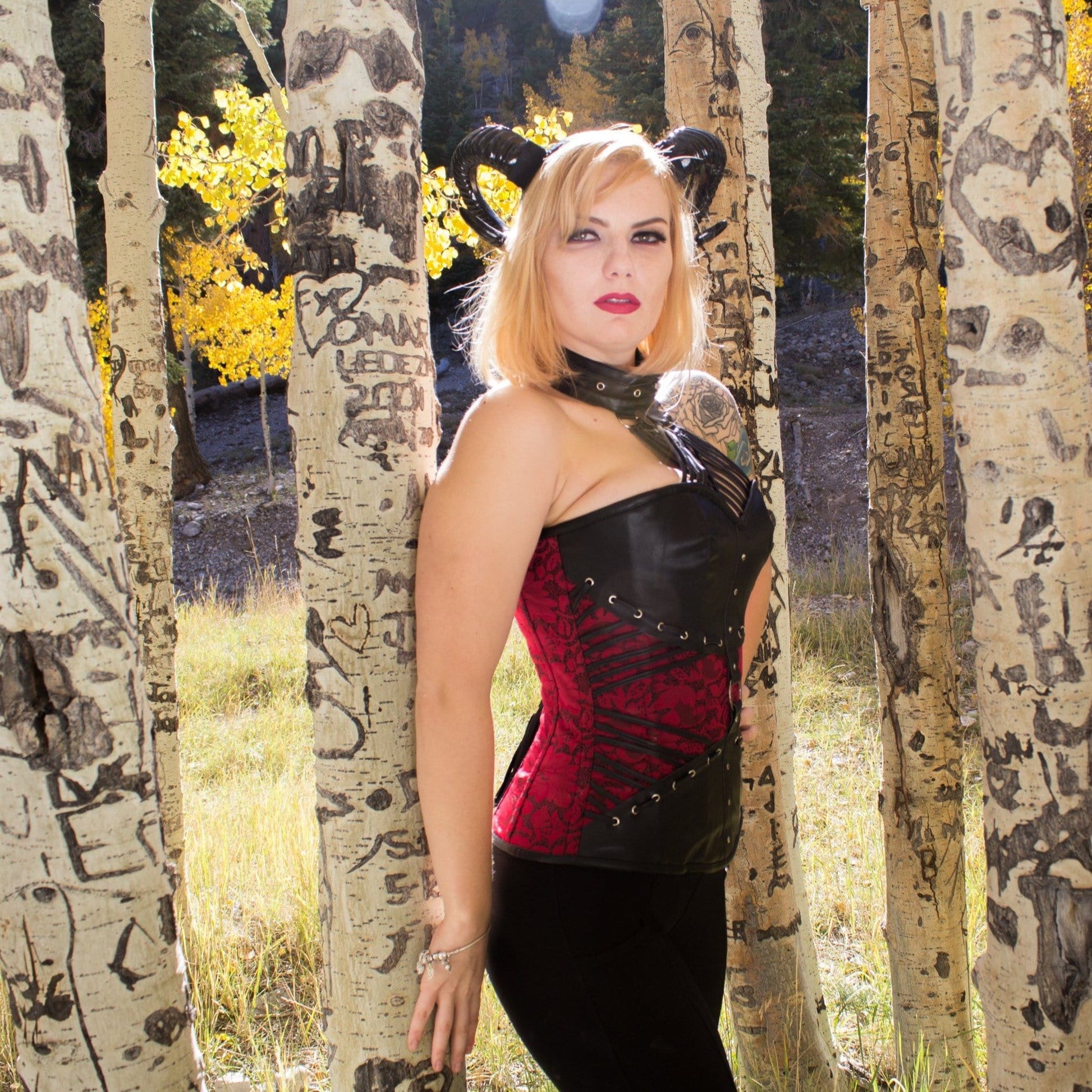 Developed with true gothic nature in mind, the Doomsday Diva Gothic Corset is a beautiful and specially designed corset that every gothic fashionista needs in their closet. The design includes an authentic steel boned brocade with an overbust corset designed with faux leather. The attached neck gear is what truly helps to add a certain feminine appeal to this luxurious corset design. There are 14 steel bones, 10 of which are spiral and 4 are flat with a comfortable and resilient cotton lining for long wear. With the side zipper opening it is easy to wear whether you have had the opportunity to take advantage of corsets before or not.