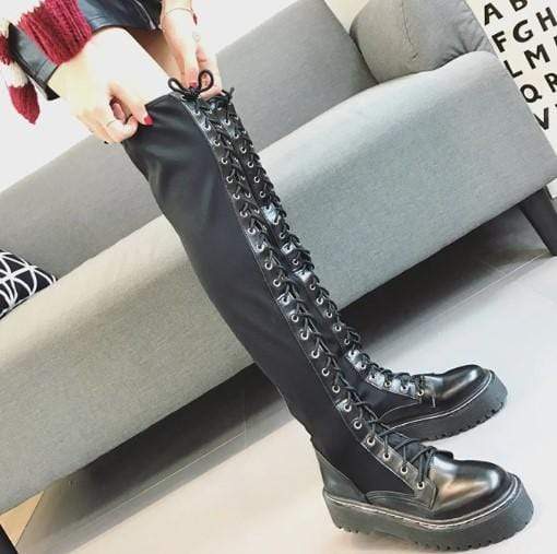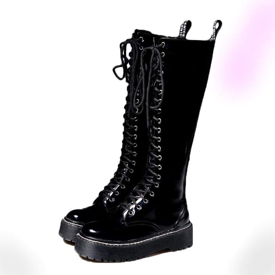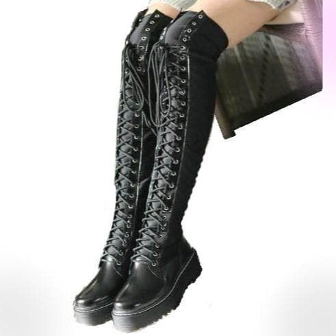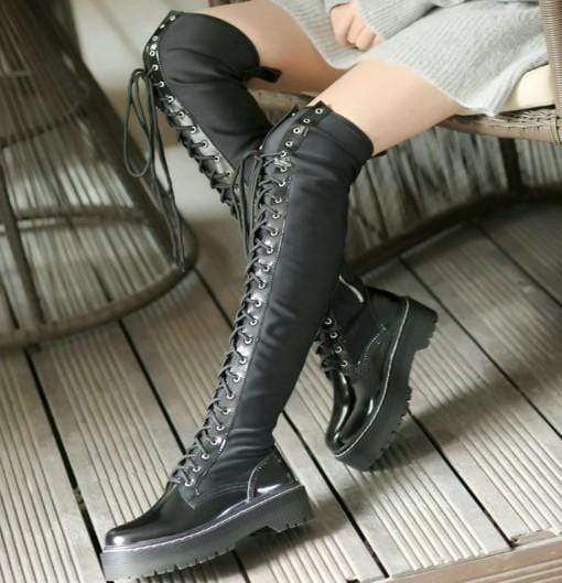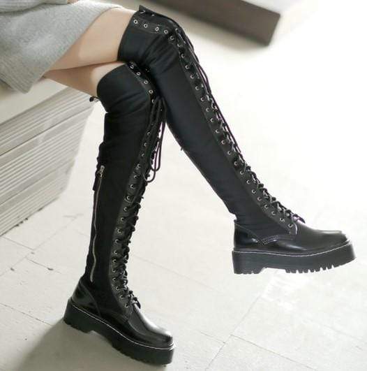 The Electra Black Lace Up Over The Knee Boots are about that powerful demoness energy, owned by only a few. Keep those lips zipped or she can really zap you walking in those platform heels, round toes and zipped up to the knee boots. We have used the finest of the PU material so that you have no complains from us.?