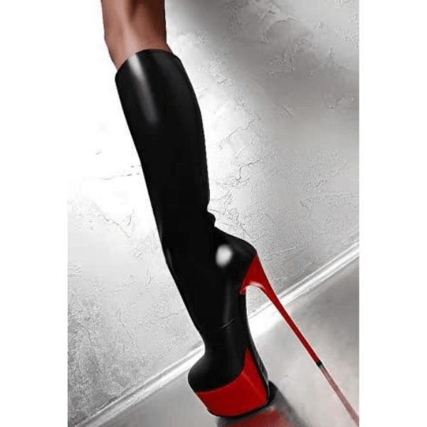 We have the 8 cms heels with round toes working out great with the long shiny long boots. The pencil heels can cut anything that comes beneath it, like loner hearts!