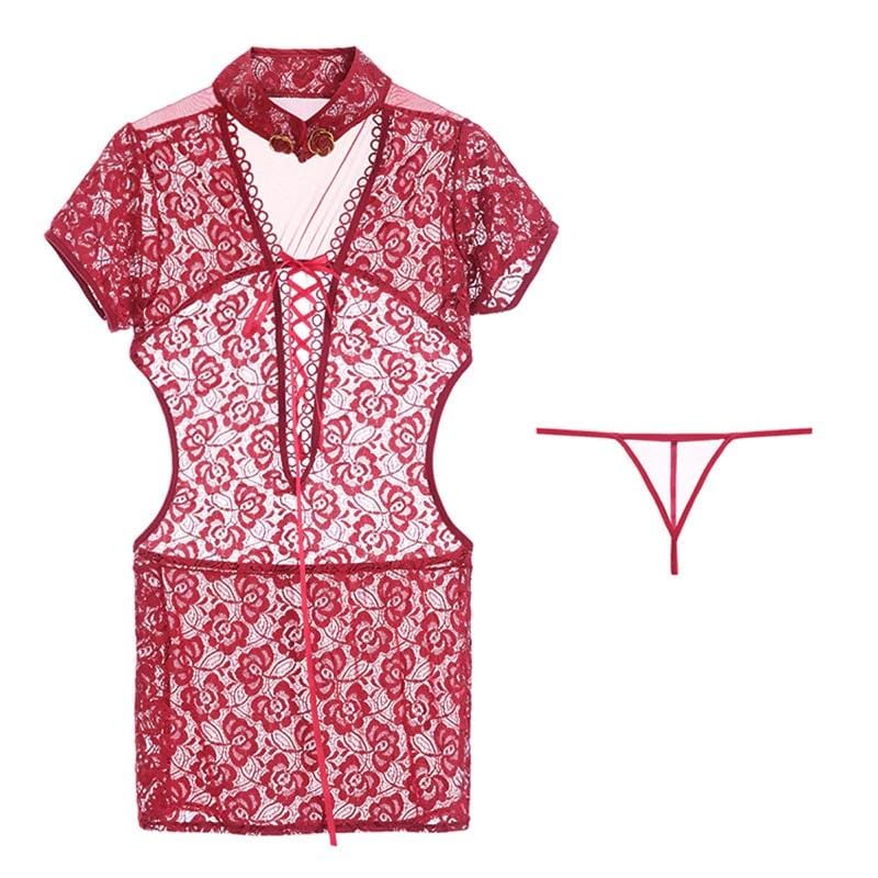 Exposed Lolita Floral Lingerie cuz you need to go wild once for a while bb! This seductive see-through lingerie has a lace floral construction, hollow-out back, sexy sheer ass construction, and an ancient type button restoring. This lingerie is very attractive and beautiful, especially from a man's perspective.