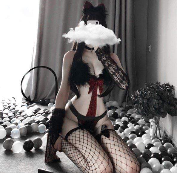 Package includes: kitty headband + bell collar + bra and pant set (Without stockings)