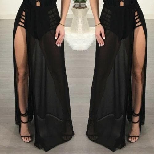 Add some glamour mixed with midnight delight; the 'Flown Away'?gothic skirt is a perfect statement piece - flowing soft see-through chiffon with a long slit and?empire?high waist design.? Simplicity mixed with the perfect balance of decadence - will help charge you with some magical flow.