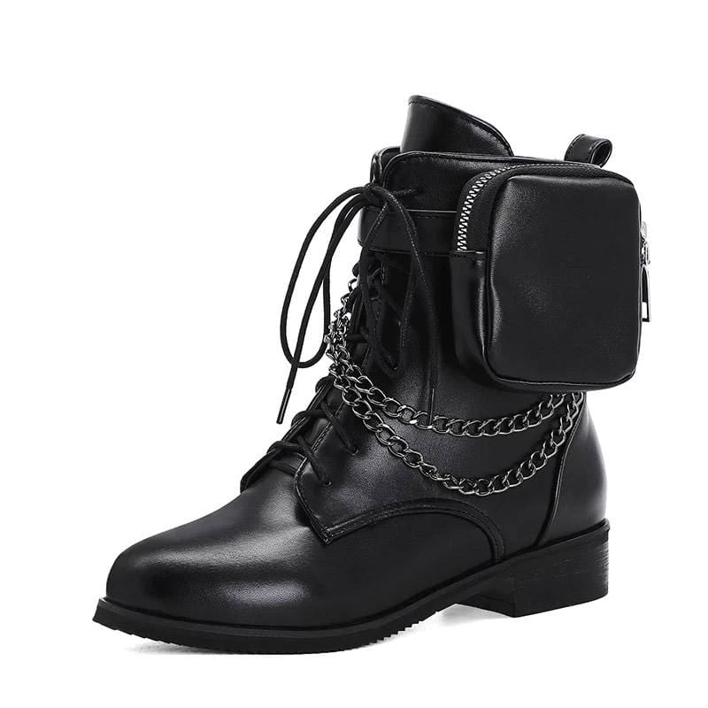 Forget that glass slippers! ur a badass princess who wears Gothic Chain Rider Boots, Let 'em bishes know you kick ass bb! featuring these sexy boots with attached pocket and hanging link chains along the ankle which is attached in the zipper.