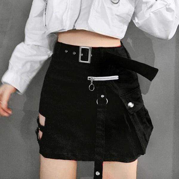 Available in two colors, the Gothic Grunge Zipper Skirt is about to zip up their mouths. This beautiful skirt has two belts going along with a side cut that has a garter decoration. With the buckle, you can use the skirt according to your own liking giving it a heavy, posh look. Have fun with this skirt, play with your outfits. That's what this skirt is made for.
