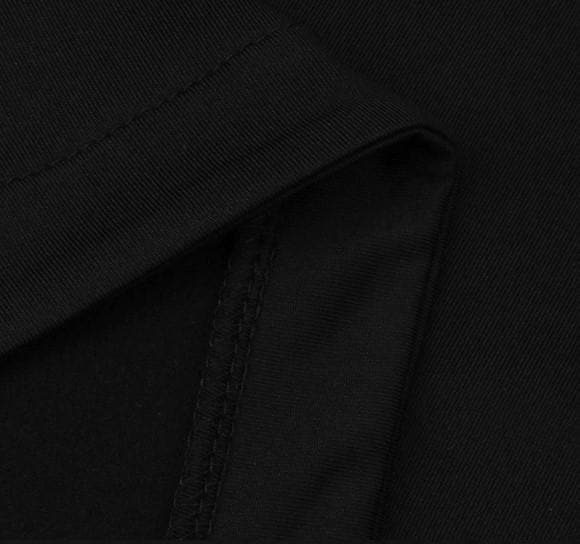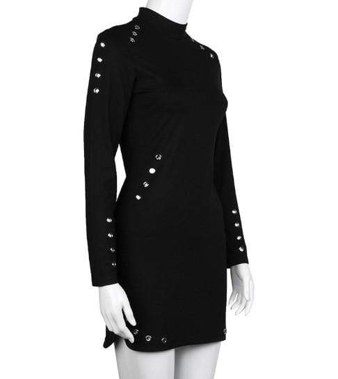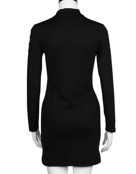 The long sleeve and turtleneck do have their charm but so does the design of this dress. A no nonsense cut straight dress with mixed material to give the wearer durability.