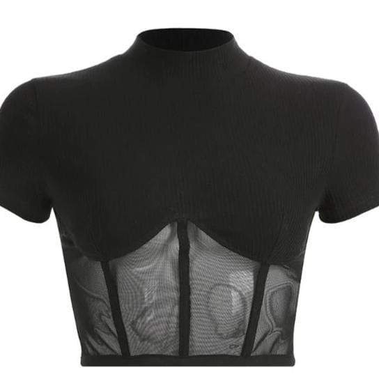 The Gothic Hollow Crop Top has the goodness of a classic top, but with a twist of a sheer corset. This top is a perfect companion for a casual outing with your Goth, punk and Grunge friends.