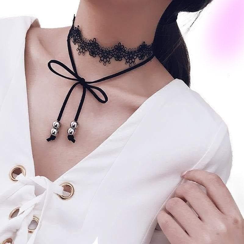 Leave the crowd in awe as you walk them by with this Gothic Lace and Tie Choker!