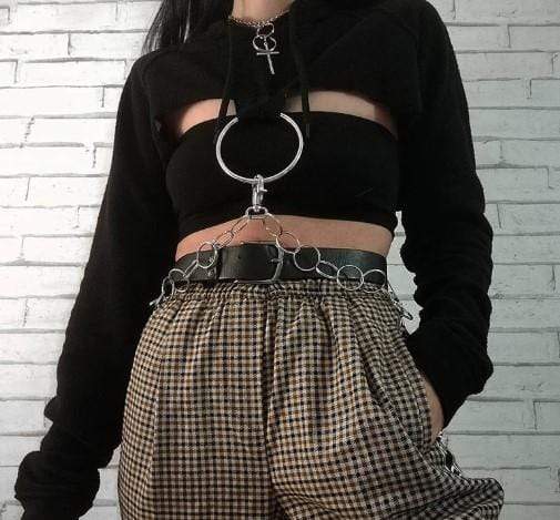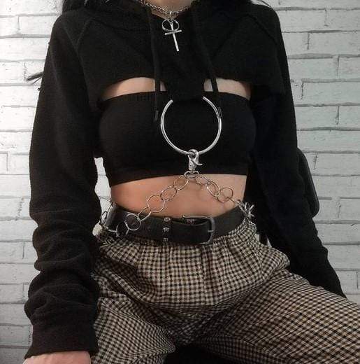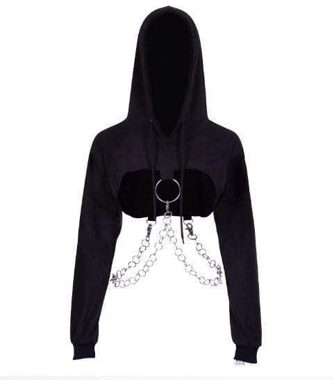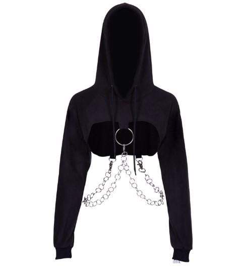 Gothic O-ring and Chain Crop Hoodie
