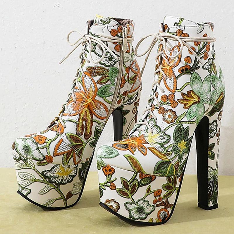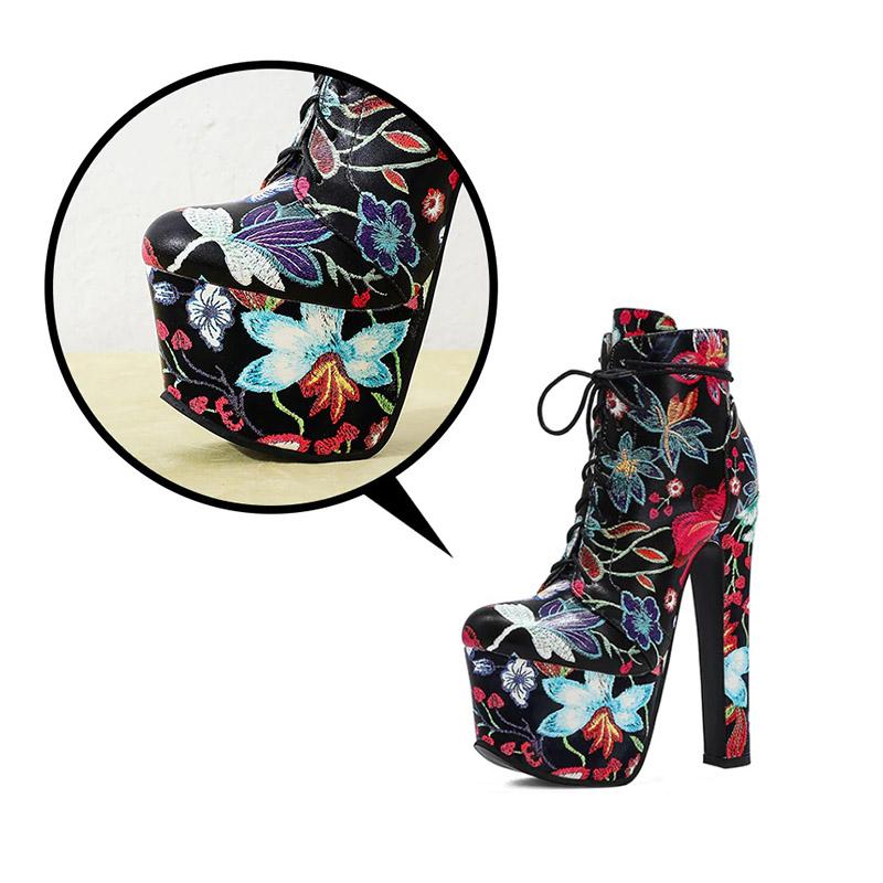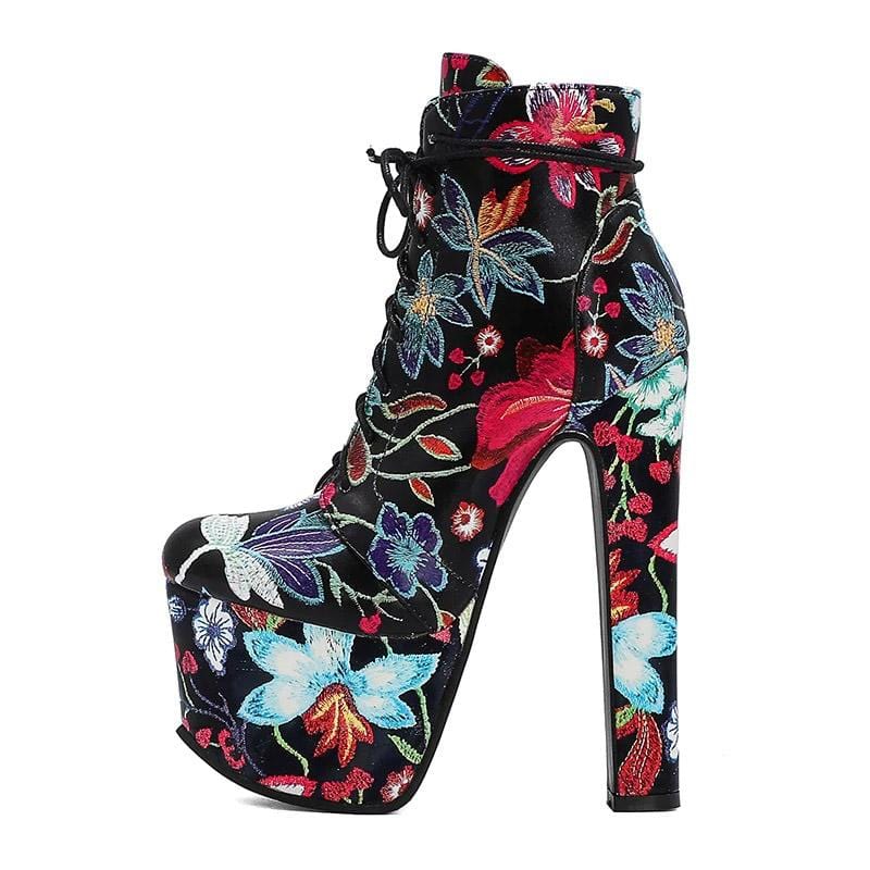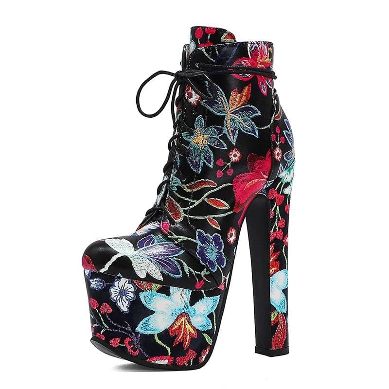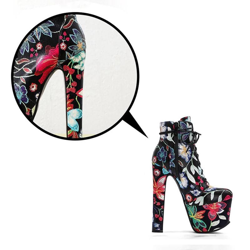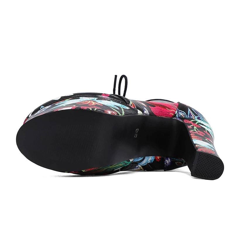 Gothic Punk Floral Boots coz shoes are a gal’s best friend. These high heel platform boots feature its artistic flower design around the soft leather surface.