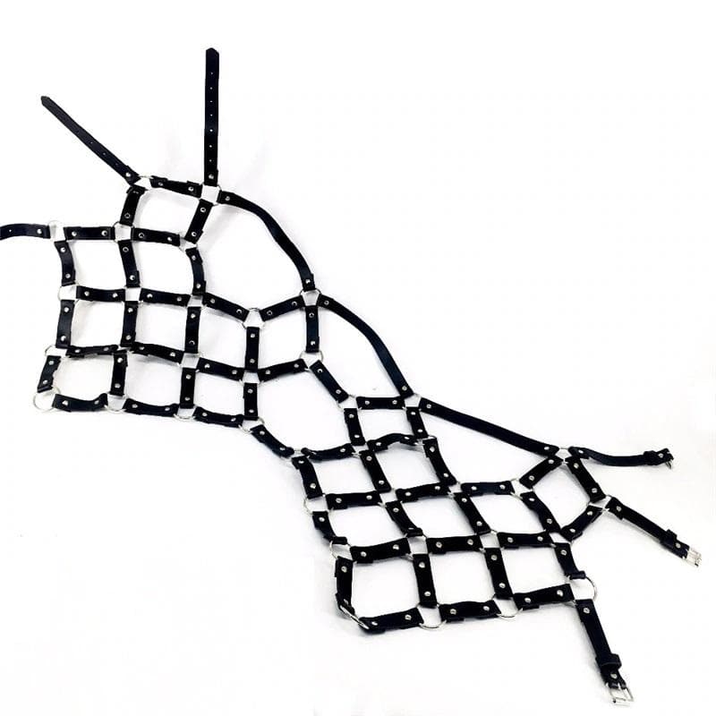 Gothic Skirt Cage Harness cuz you're a hellish blessing bb. Go bold, and show your sexy edge in this hollow out punk harness which has three adjustable buckle belts with multiple o-rings connected.