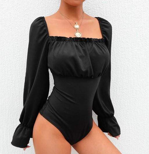 Gothic Vintage Back Lace Up Black Bodysuit