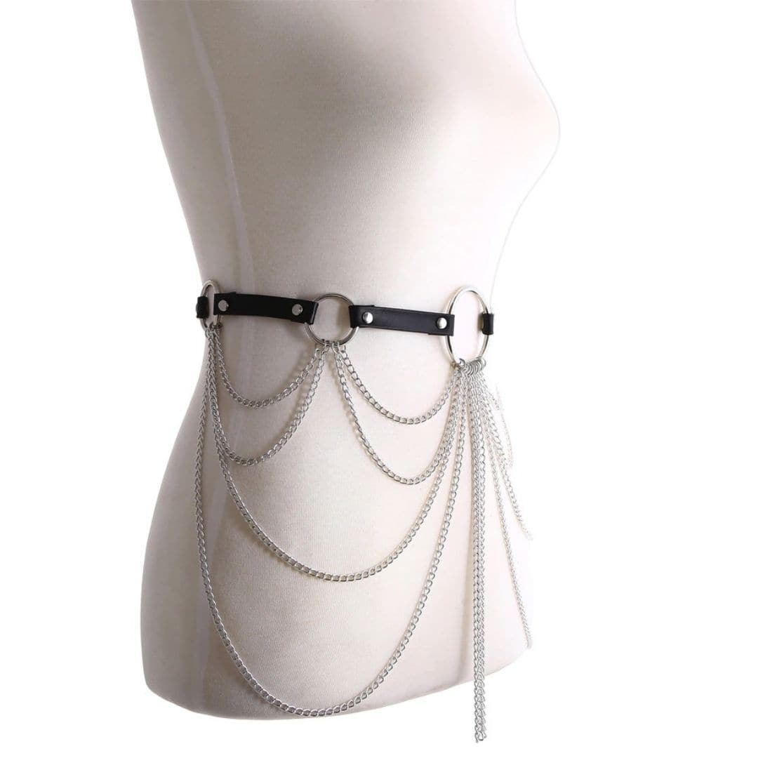 Hardcore Lover?Gothic Chain Belt cuz they shall all worship you bb! This faux leather sexy adjustable waist belt composed of layered link chains connected to each o-rings.