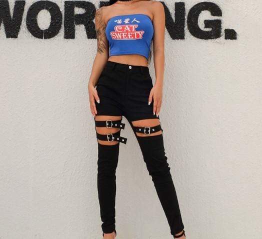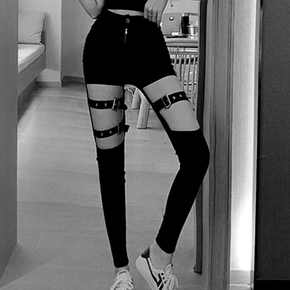 Hollow Out Buckle Strap Pants