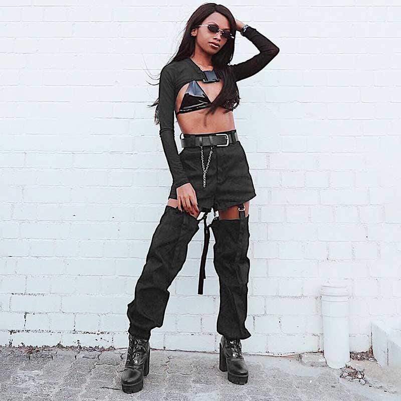 Most of our products are made with a range of Cotton, Polyester, Faux Leather & Spandex. Please look at the description above for the specific gothic leggings.
