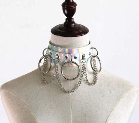 Most of the Goth chokers have always come in black. If you are looking to escape the color but love chokers, this Holographic Chain and Rings Choker Necklace might just be the thing you were looking for.