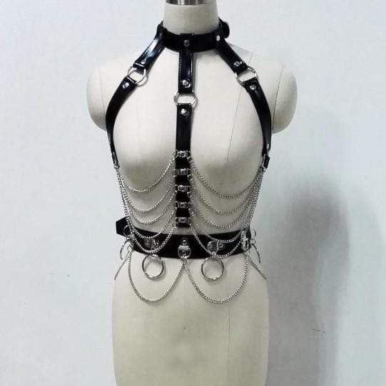 If you are looking at stepping up your game you are sure to do it in this Hot Mess Body Chain Harness & Belt Set.
