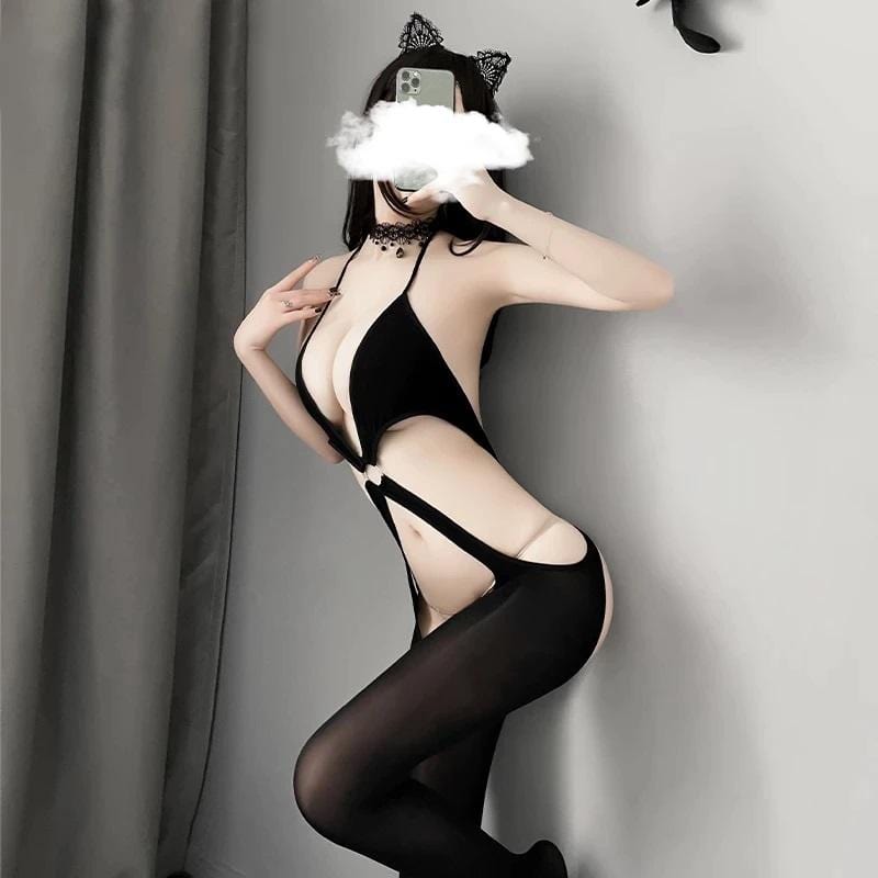 She is fire - watch yourself or you'll get burnt. The 'In the Mood' crotchless bodystocking will make hearts skip a beat. Smooth stretch fabric in a deep V neck and open crotch design for a flattering and killer fit! Adorned with round hardware motif to the front and back. Adds extra craving to your partner in crime!