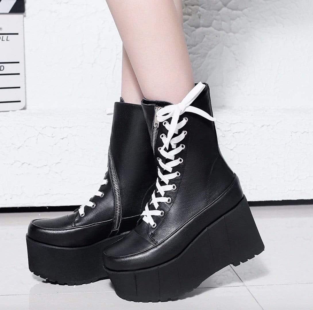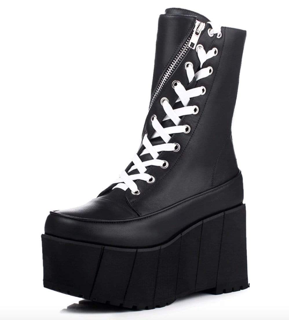 These boots are all about that curious cat. The Inquisition Leather boots are all about quality. These are made of genuine leather and have the lining and shaft material to be PU Leather. The lace up type is beautiful and is available in two varying shades. Round toes, wedges and that super high heel height of 8 cm and above is gonna take you to places!