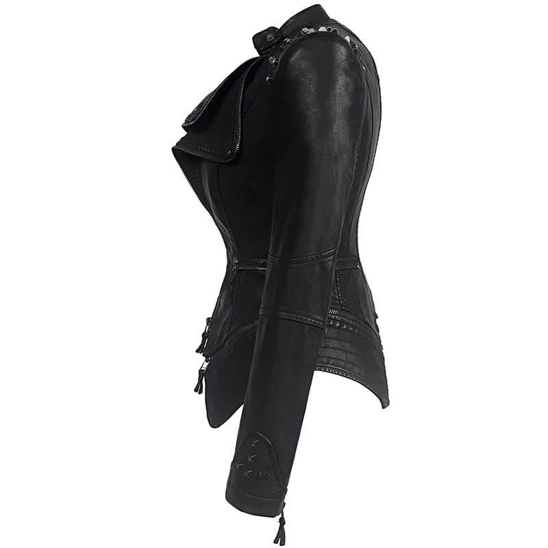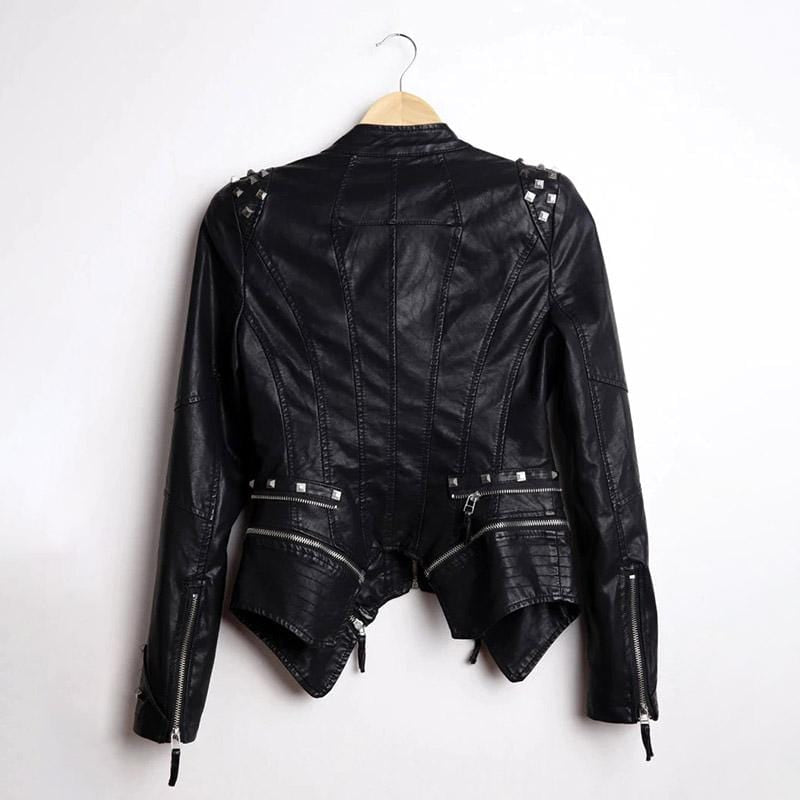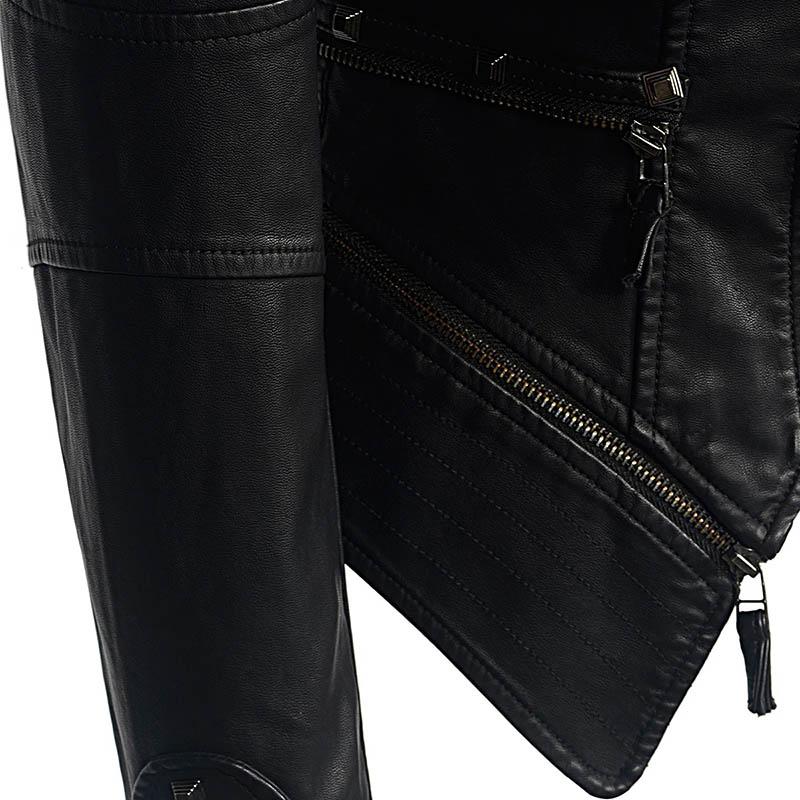 Jean Rider Faux Leather Jacket cuz you're bad bish daredevil bb! Ride the time of your life in this black biker jacket, it's designed to rock your world. This jacket features a rivet and multiple zipper design which is very intimidating.
