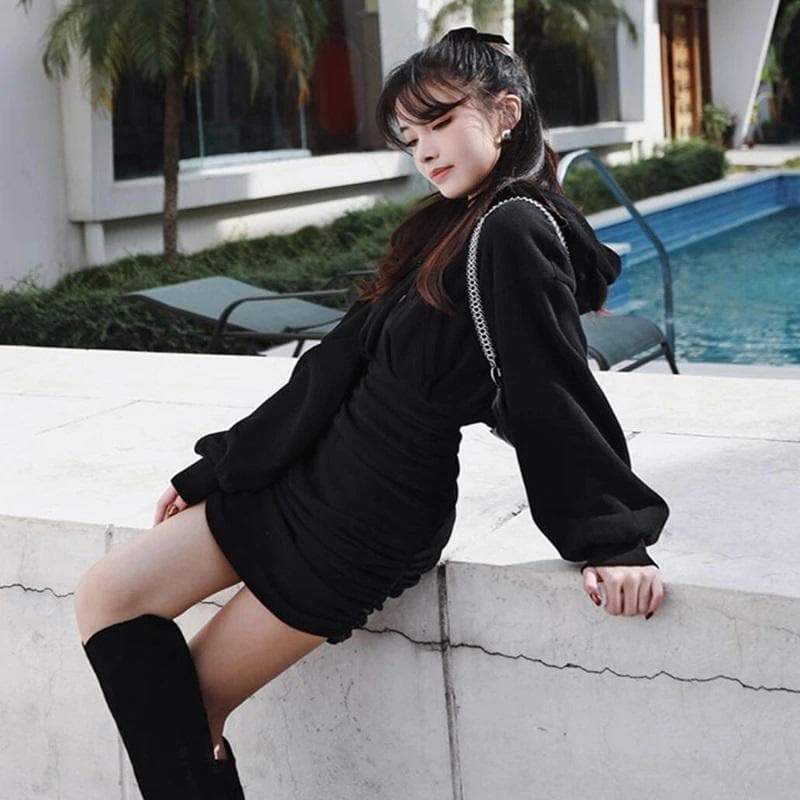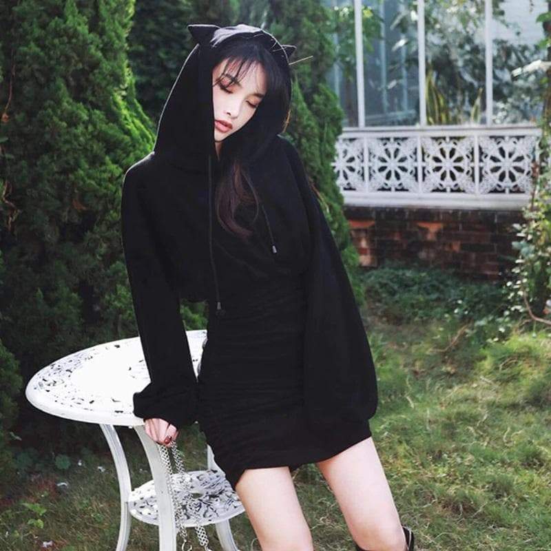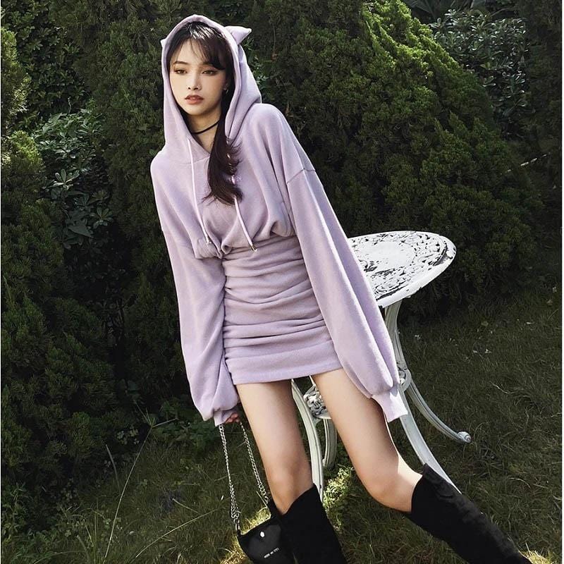 No one could steal your spotlight in this Kawaii Slim Dress Hoodie. This cute pullover dress hoodie has a cat ear decoration on its hood, puff long sleeves, and a stylish ruffled dress.