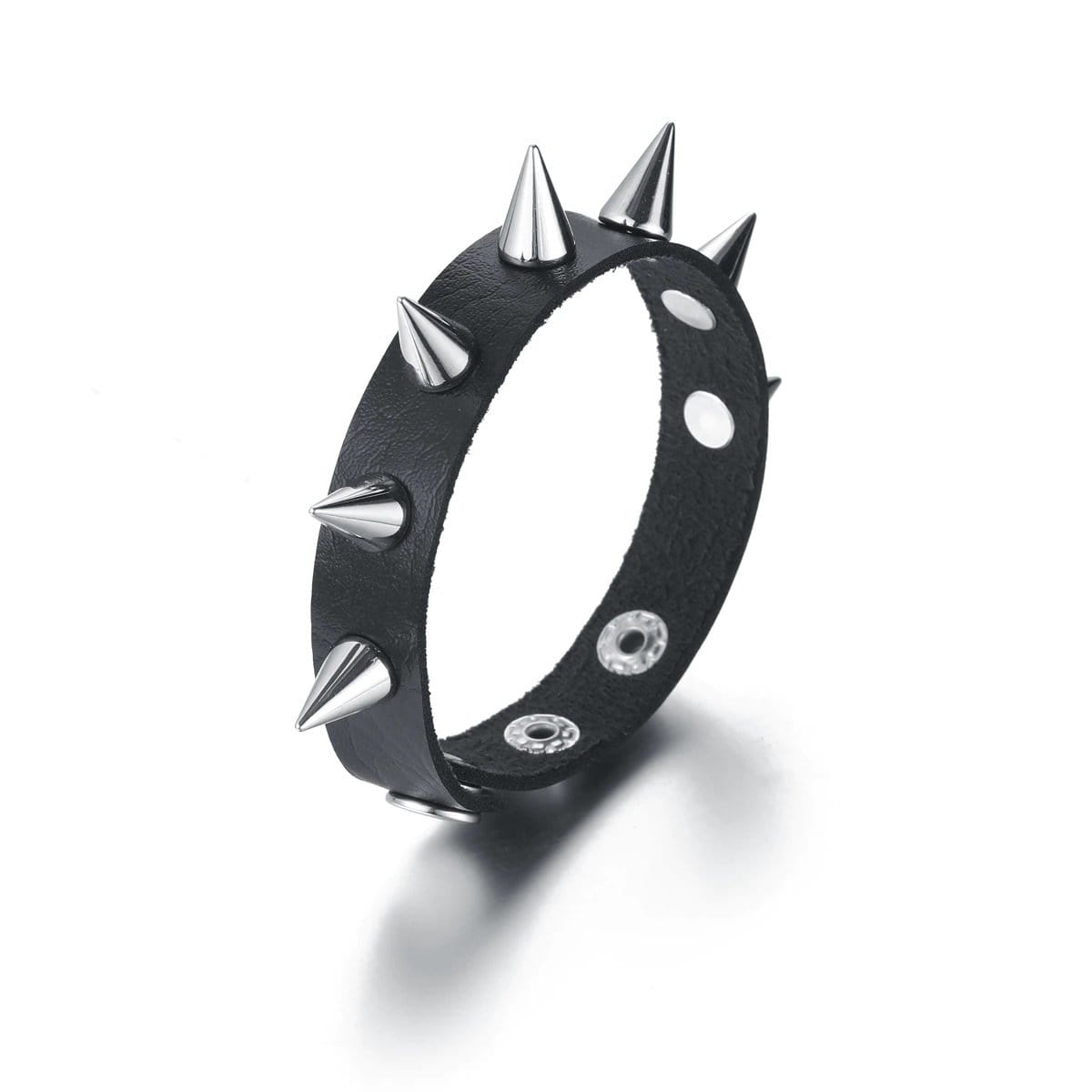 Sense the darkness in you in this Killer Spike Leather Bracelet. This rocking cuff bracelet features a different type of color that blends into your mood and statement rivet spike showing off a strong vibe of your personality.