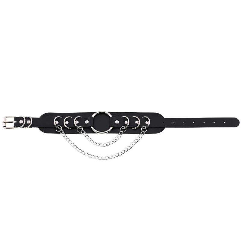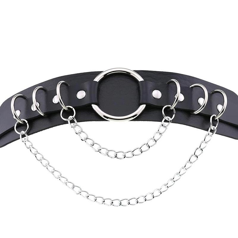 Summon some fetish to your fashion with this Lawbreaker Punk Leather Choker - made from luxe vegan leather with statement large O ring feature front, zinc alloy link curb chains, and rivet details. Brings any outfit to life. Excellent for cosplay or roleplay, lingerie night, or self-pleasure.
