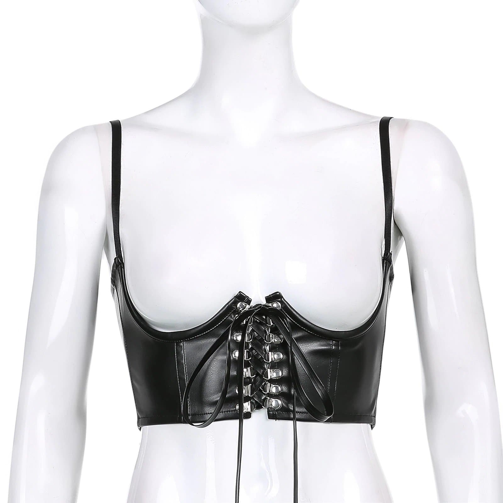Lil Black Vest Corset cuz you're their favorite nightmare babe! This gothic underbust corset features its lace-up tie crisscrossing within the Revit hooks. It has an aesthetic solid black color and thin spaghetti strap perfect durable enough for your daily wearing.