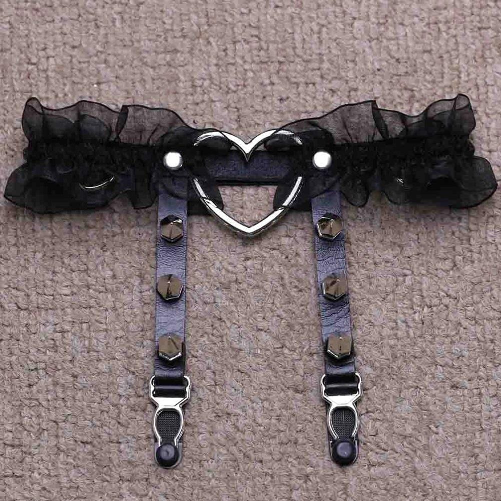 Love Punk Gothic Leg Garter cuz you are always on your best behavior bb. This sexy leg ring garter belt features a sheer edging, a heart ring design, and a dual suspened rivet strap.
