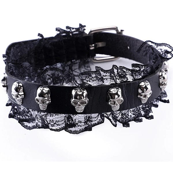 Lustful Skull Choker Necklace embodies equal parts?rebelliousness and stylish detail! A single strap choker with?silver skull?studs and lace details. And adjustable back, of course. Brings any outfit to life!?