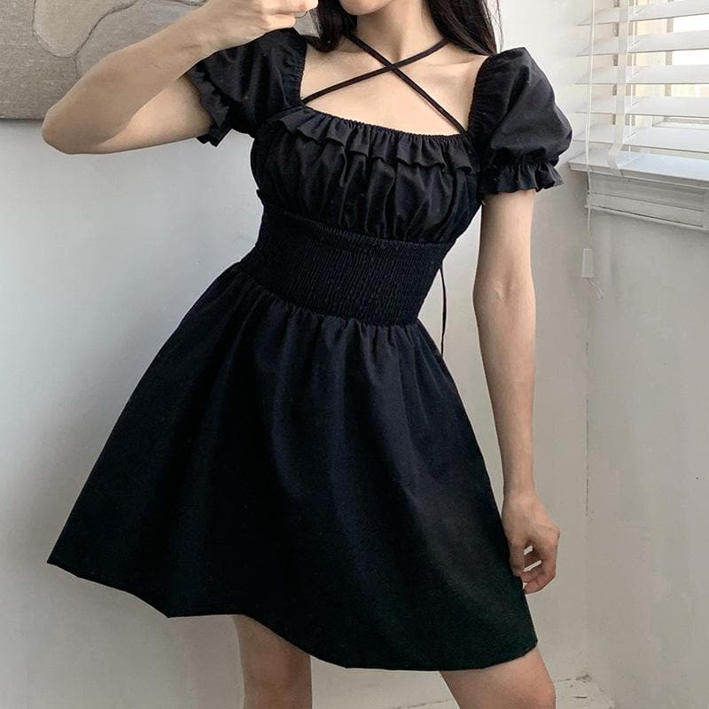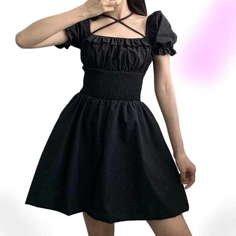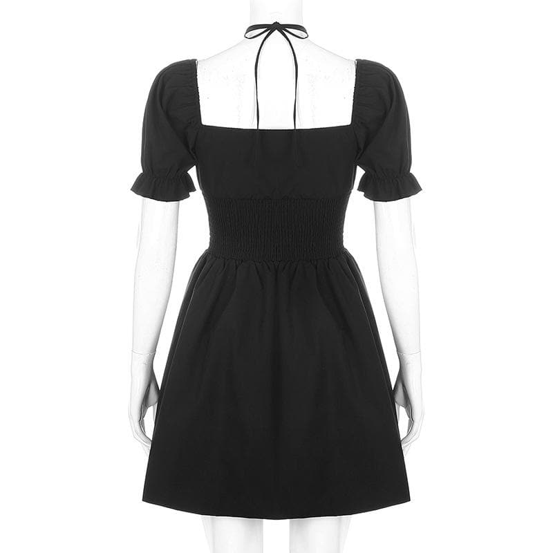 Real-life doll dress with some romantic detailing - bringing you a perfect balance of sweetness to the dark abyss. 'Macy' is a soft poly-cotton sweet lolita dress with a cute puff sleeve, delicate ruched details and a square neckline with a thin lace strap. Statement high waist A-line design for some added curve. Purrfect for play-dates, picnics under the moon and epic festival lineups alike!