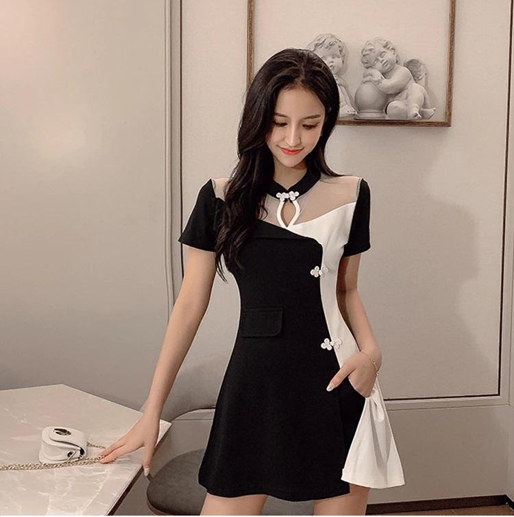 You're a pretty pagan in this black and white Mandarin Style Two-Piece Dress Set, made in hell for darling demons! Conjure some occult with the white mesh and statement Chinese knot buttons. A high-waist and a-line cut to flatter your figure!