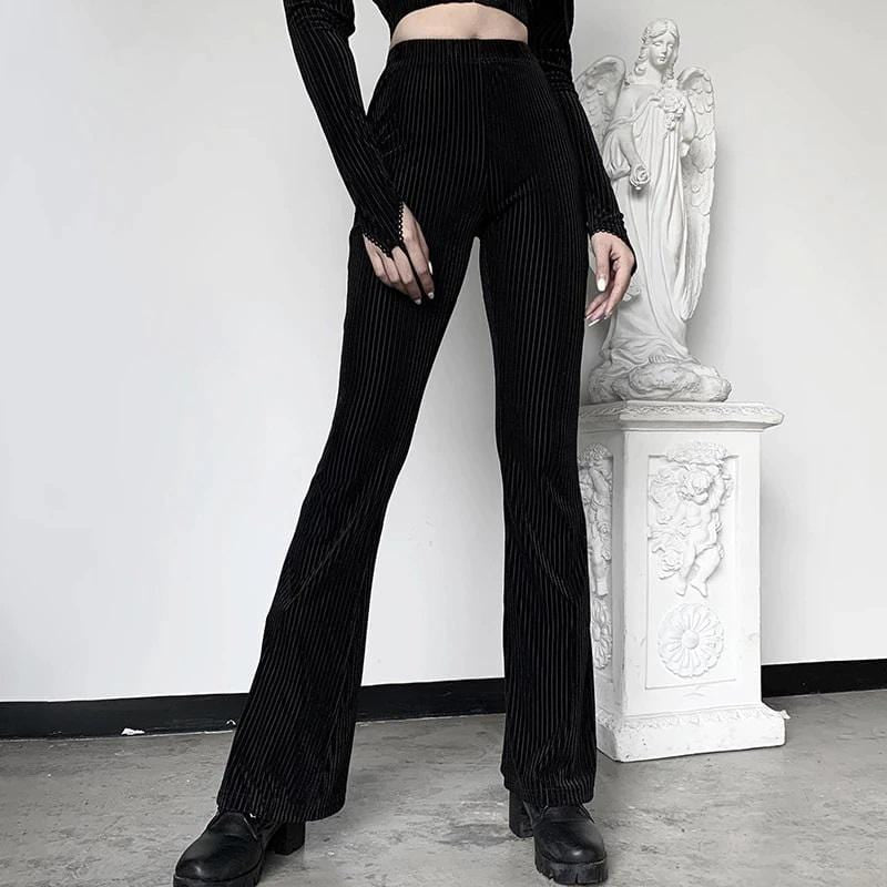 Let 'em know they can't handle you in this Manhunter Vintage Flare Pants babe! These retro high waist pants feature an artistic corduroy design and boot cut style showing off your classy goth vibes.
