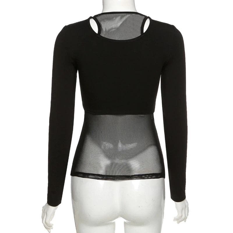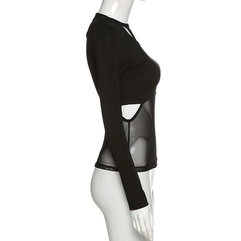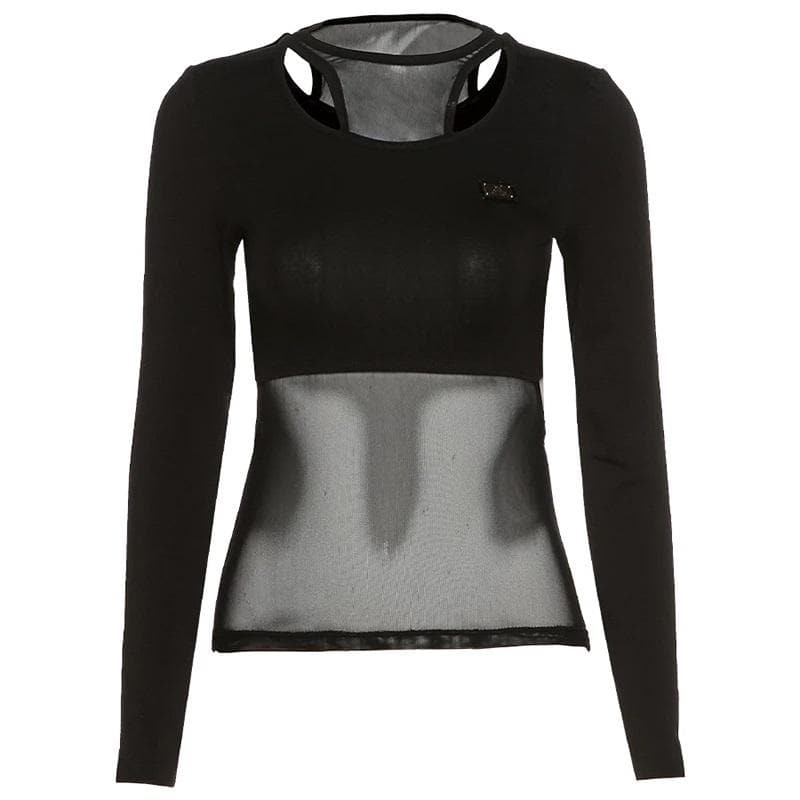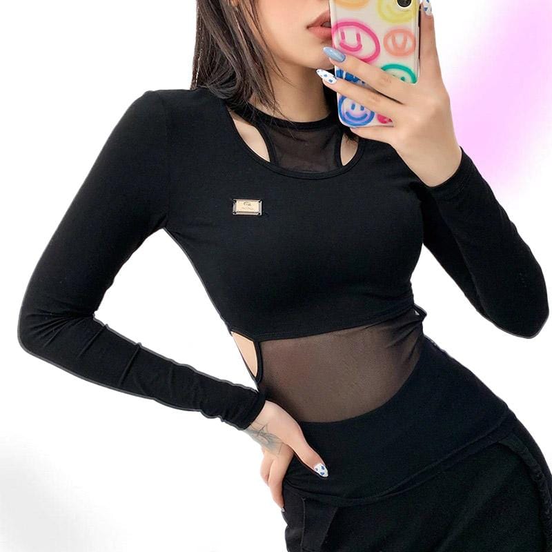 You never back down on a challenge with this Mesh Kawaii Insurgent Top featuring a bodycon see-through construction around the neck and the underbust section with a hollow out design and a slim fit long sleeves.