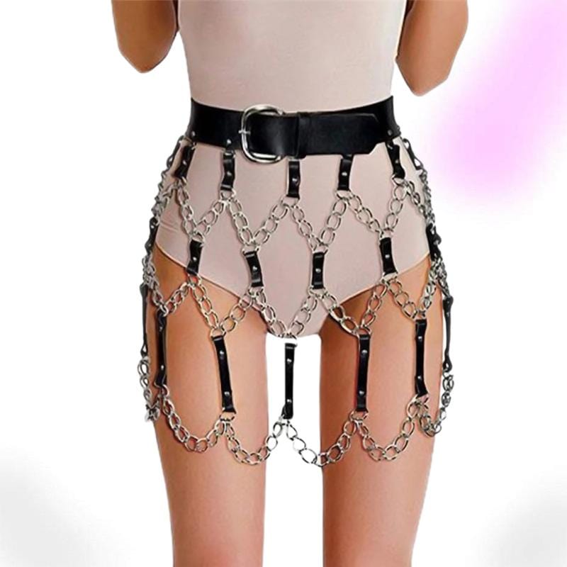 Night Rave Leather Harness Belt cuz you embrace your sexiness bb! This sexy faux leather harness belt features its link chained forming like a skirt showing off your badass party gal spirit.