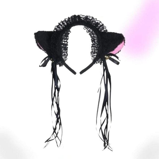 Get frisky with this stylish Plush Cat Ears Headband featuring beautiful pointy fluffy plush ears on the side with pink color inside. Adorned with lace ruffles, golden bells, and ribbon tassel decoration. Elegant design and bright colors make you more attractive and beautiful. Match with fashion dress, lingerie, uniform, or cosplay costume.