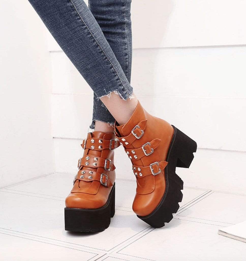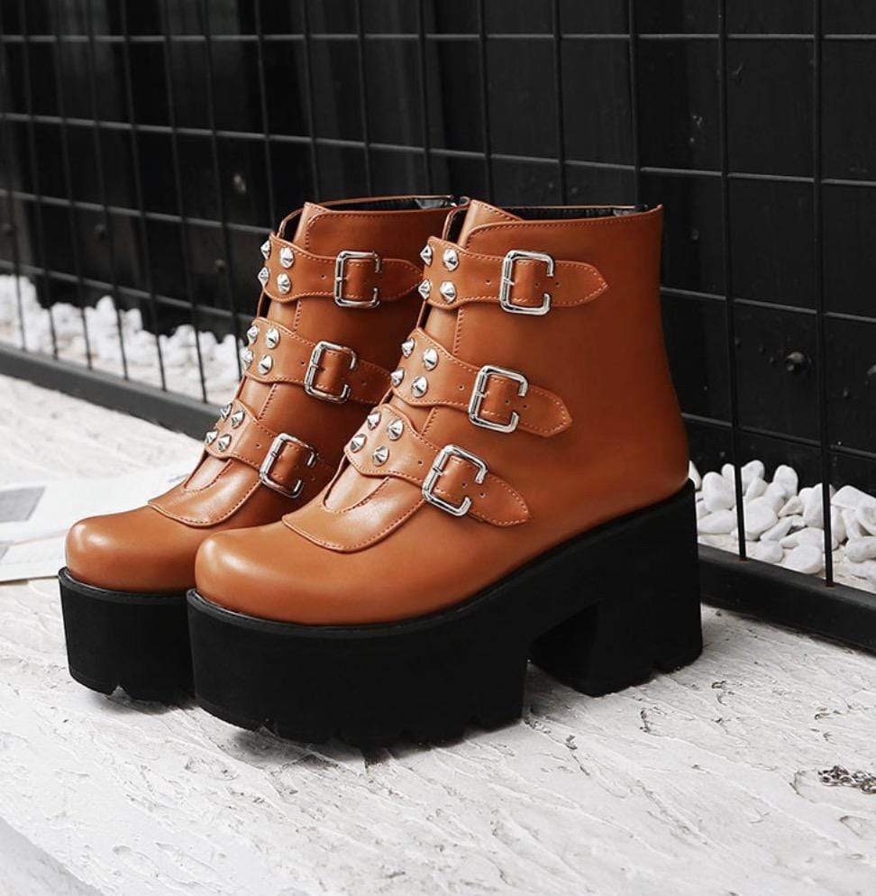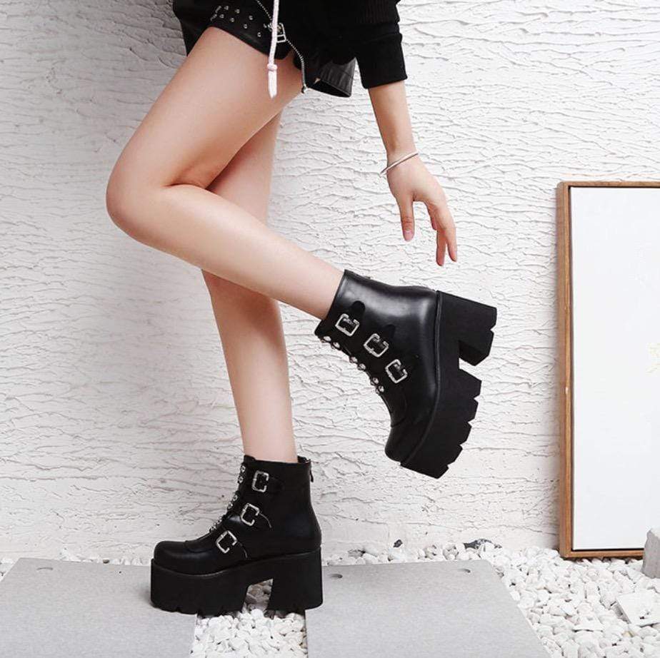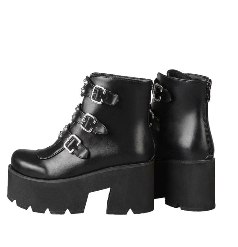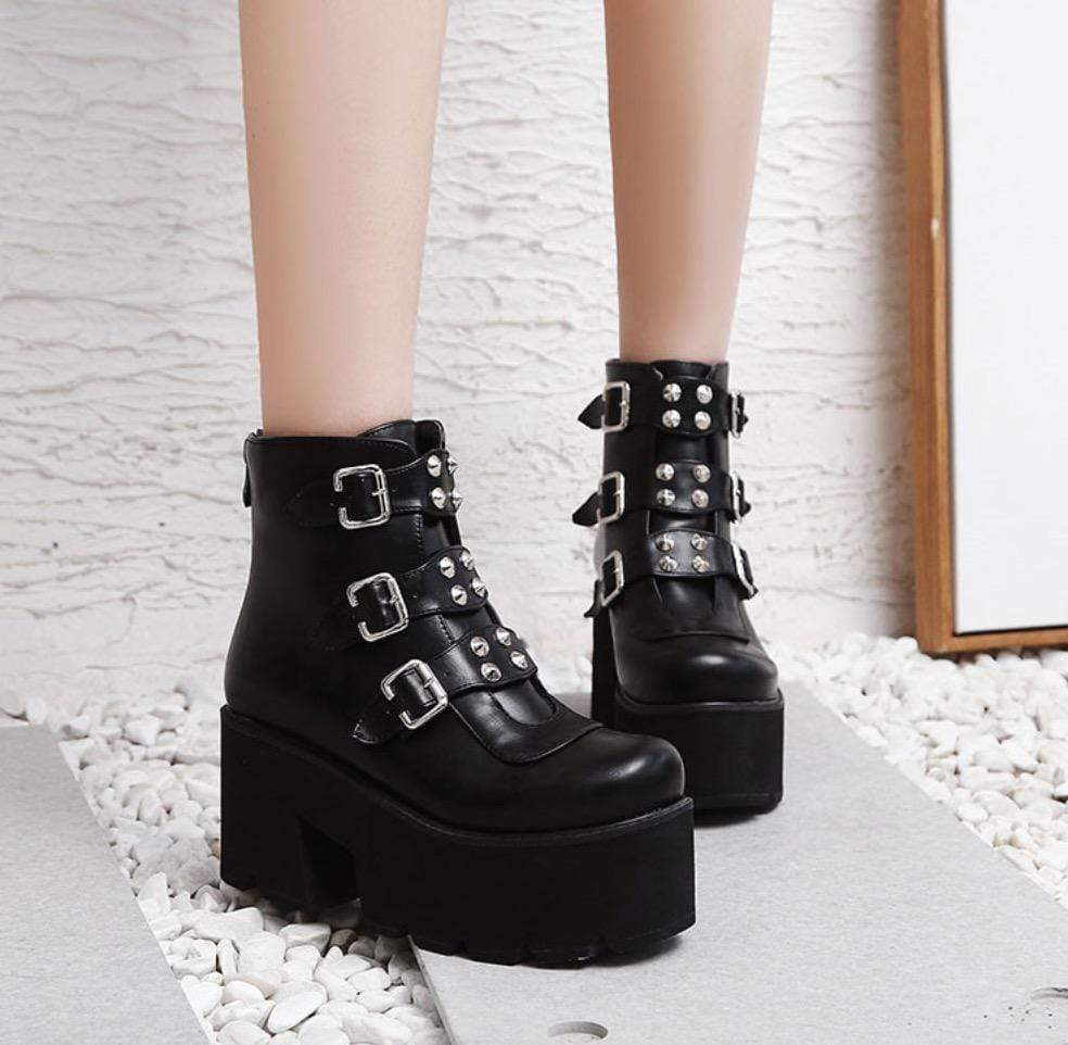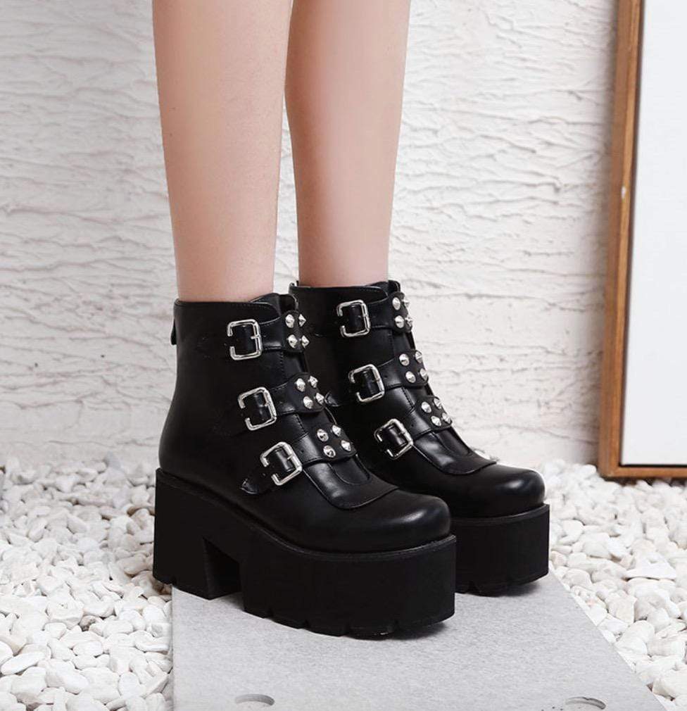 Those Combat boots are about to shine with those PU material, buckle decoration and and rivets. The Platform heels are 3-5 cms. with the heels of 8 cms.