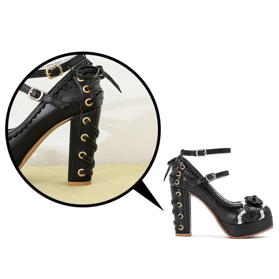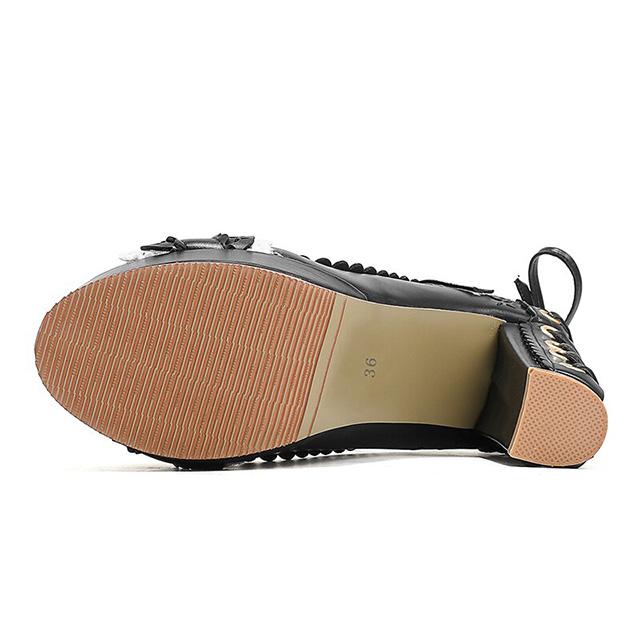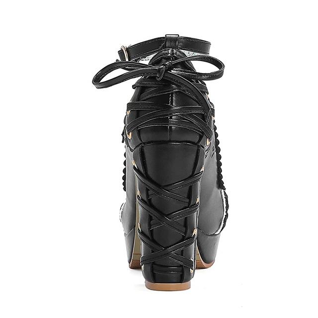 The PU material, rubber and buckle strap are all about to look real good under a corseted dress. On top of that, we have made sure that the heels are laced up and are available in four colors.