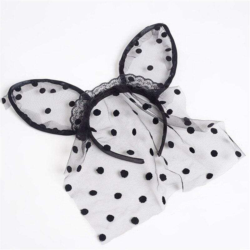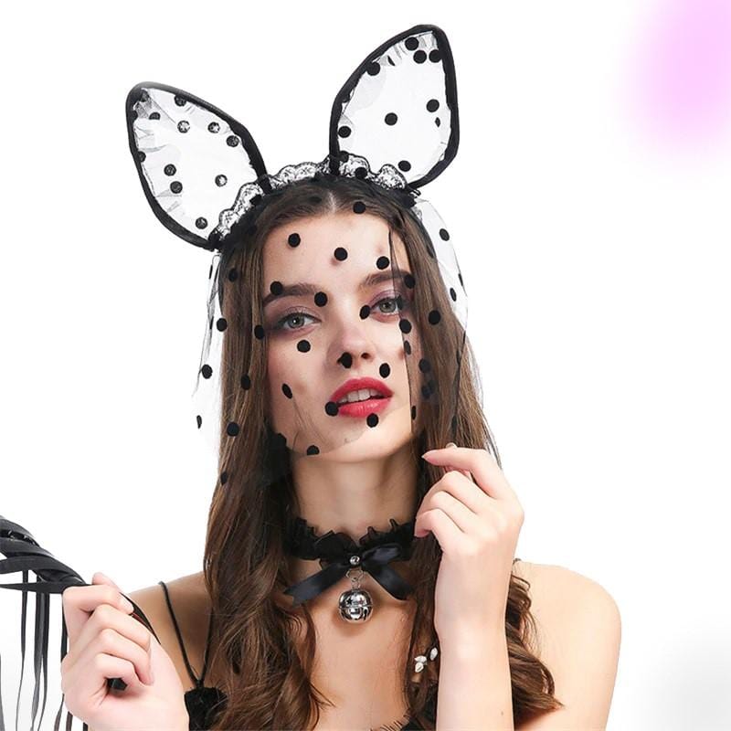 Get frisky with this stylish Pussy Cat Ears Headband featuring structured kitten style ears with a polka dots net fabric. The other small-eared headbands feature sheer floral lace with two ribbons and golden bells. These are like mother and children Feline headbands.