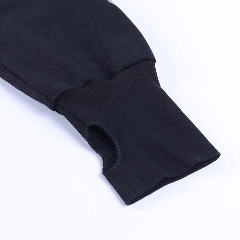 Reflective Cropped Chained Hoodie cuz you shine bright like a diamond, bb. Let your figure lit and take notice in this fashionable gothic hoodie featuring a black link chain from front to back and a carbonize skeleton-like print sleeve design.