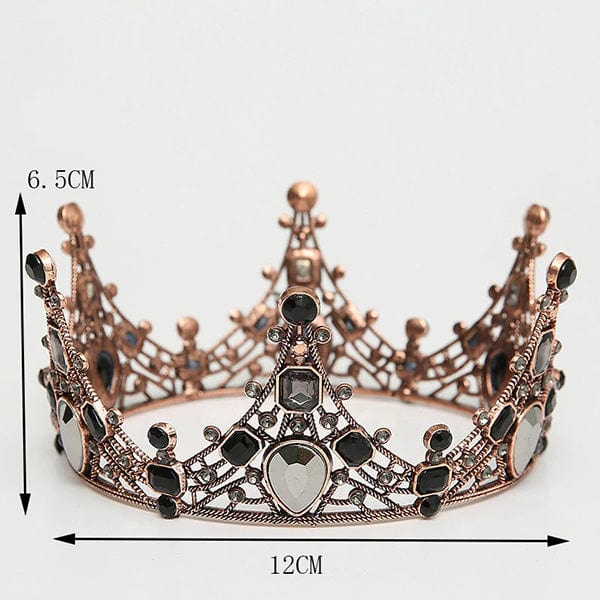 A romantic and vintage-inspired bridal veil featuring an intricate crown. The double-layered black veil with floral lace on the edges is made from organza with a comb to sit perfectly in the hair.