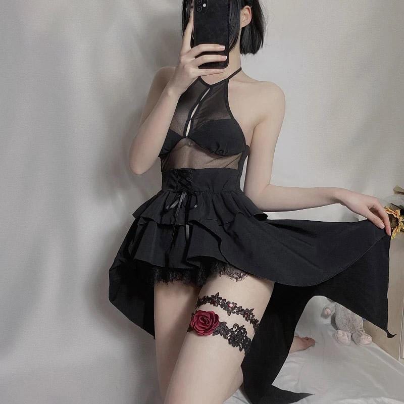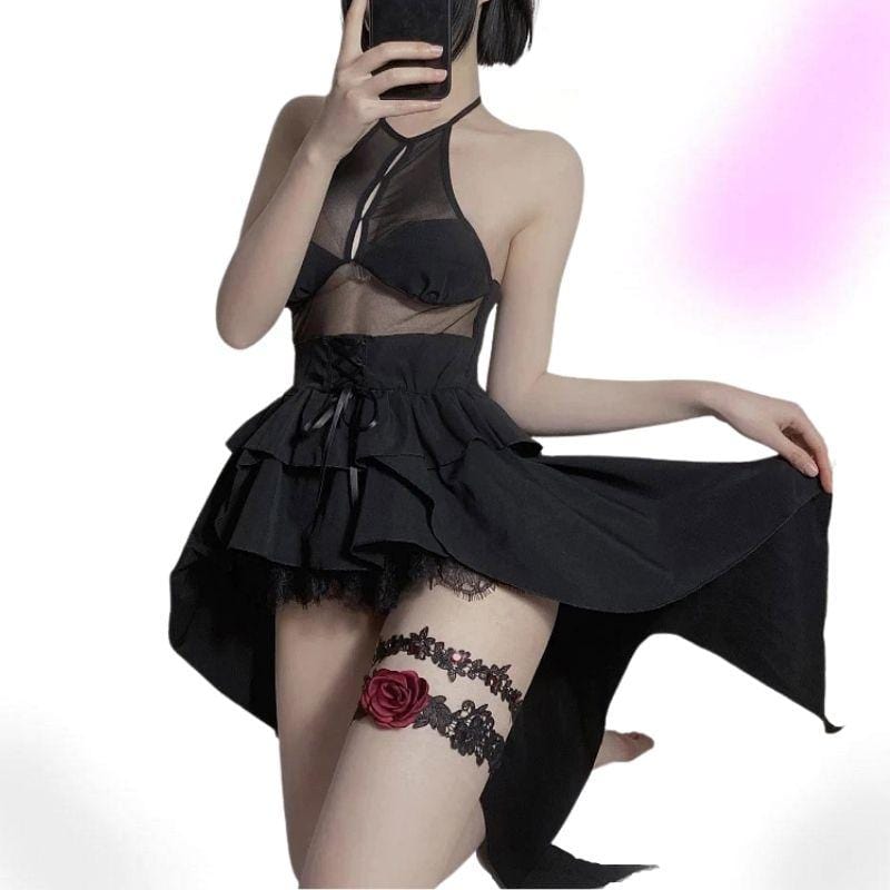 Put em' under your spell in our Royal High Erotic Lingerie. Conjured using a luxe soft stretch fabric that hugs the body in all the right places for a flattering fit that will have you feeling powerful. Features seductive mesh halterneck, backless, and dovetail skirt. Perfect for yer dates with Devil, howling at the moon and sorcery-hookups alike!
