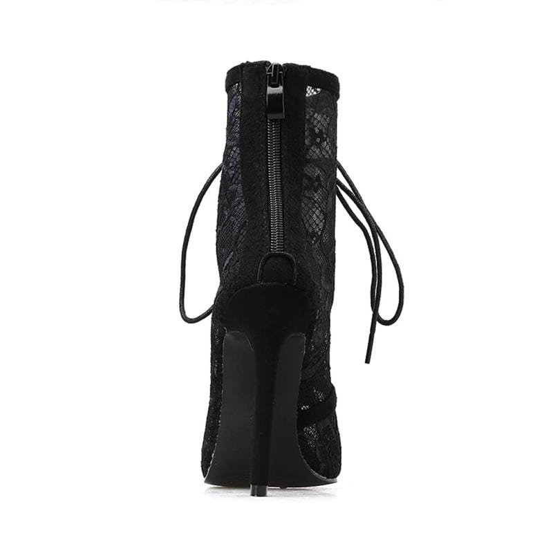 Sassy Gal High Heel Boots cause your middle name in success babe. Be confident in these heeled lace-up boots which have a leather and see-through lace construction, back zip closures, and sexy thin heels.