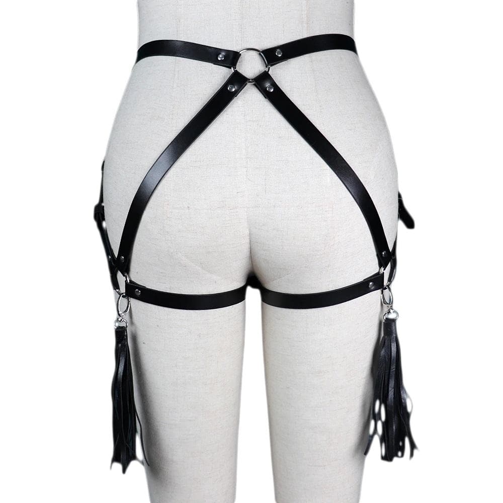 Sensual Bride Gothic Leather Harness cuz it's more than a bad romance bb. This sexy bondage belt harness has two tassels on each side, its buckles are adjustable excellent for cosplay, roleplay, lingerie night, or self-pleasure.?