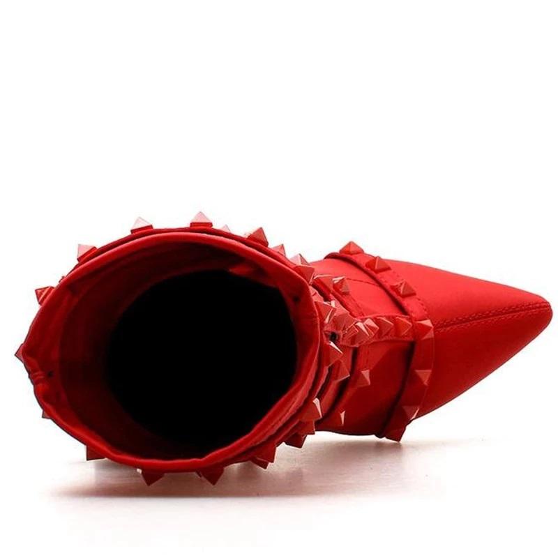 Turn up the heat on any outfit with these Sexy Rivet Cage Boots! These thin pointed high heels will compliment any outfit especially a badass theme get-up, it features a stylish design of rivet belt inclosing the boots.