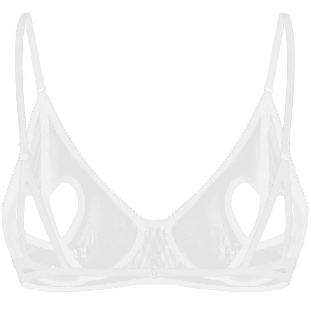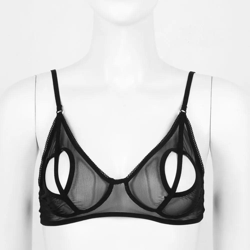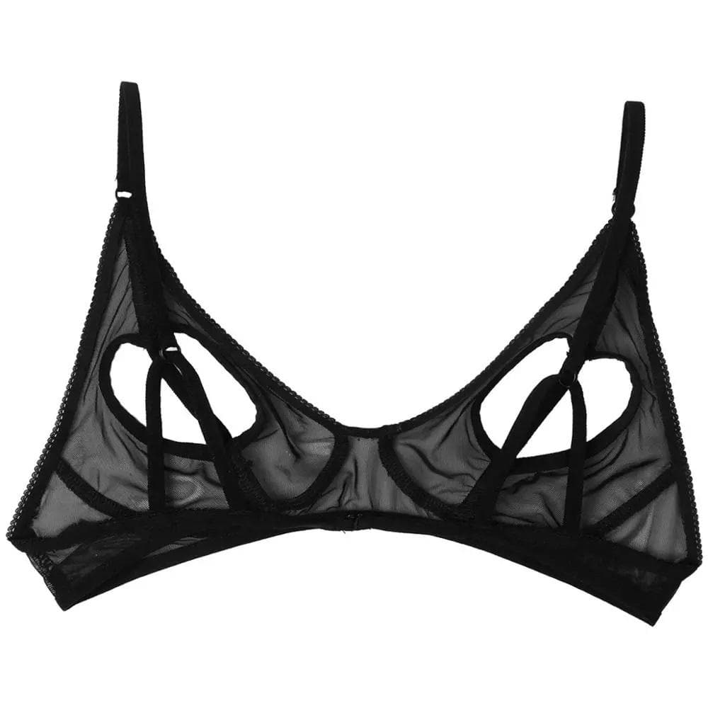 Fulfill your lover's sensual bedtime fantasies in this Sheer Open Heart Bra. This sexy lingerie bra features an open cup heart shape hole a wire free and unlined triangle cup. It also has adjustable spaghetti shoulder straps and punge v-neckline