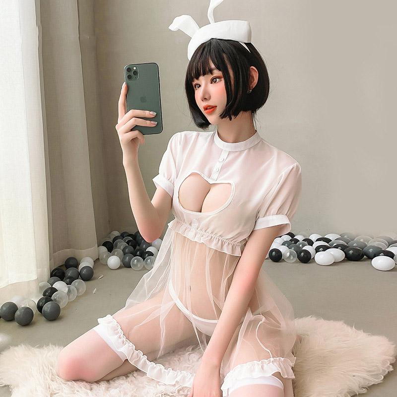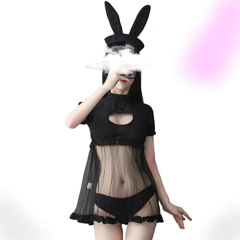 Slutty Bunny Girl Lingerie pounce on ‘em for a naughty time! Dazzle and delight all night in this playboy sexy lingerie featuring a cute pussycat headdress, a hollow out top dress with a sheer type design, and fine stretchy underwear.