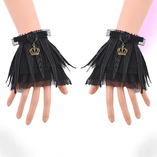 A pair of wrist sleeves that will make you one of the most beautiful of the evening, with beautiful details - layered lace tulle, bowknot, lace trims, and beautiful crown charm.