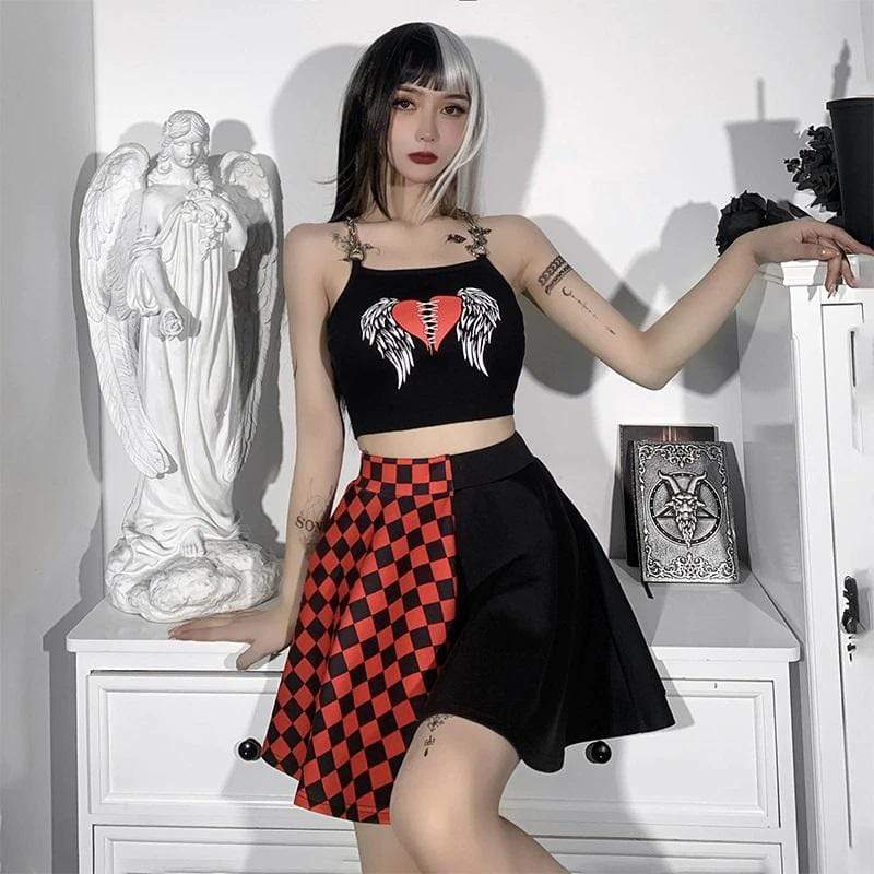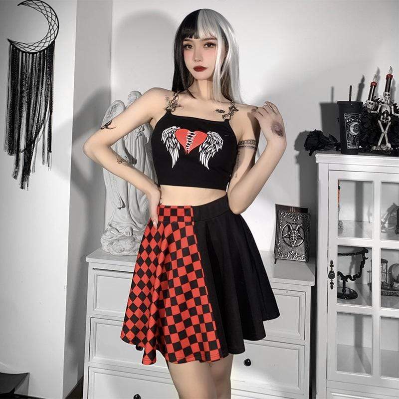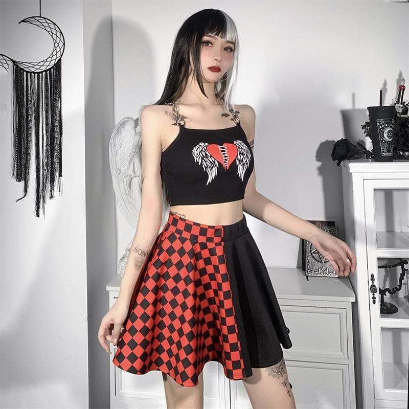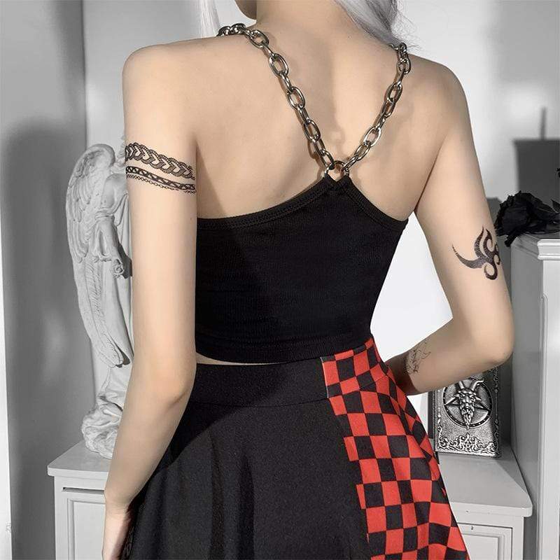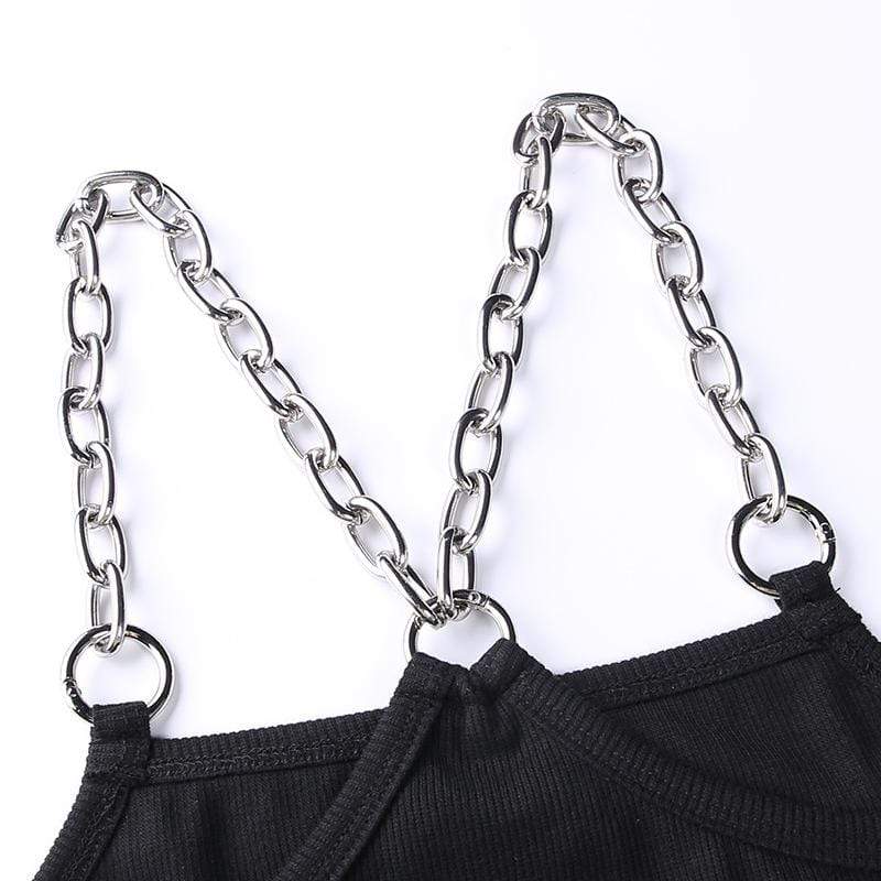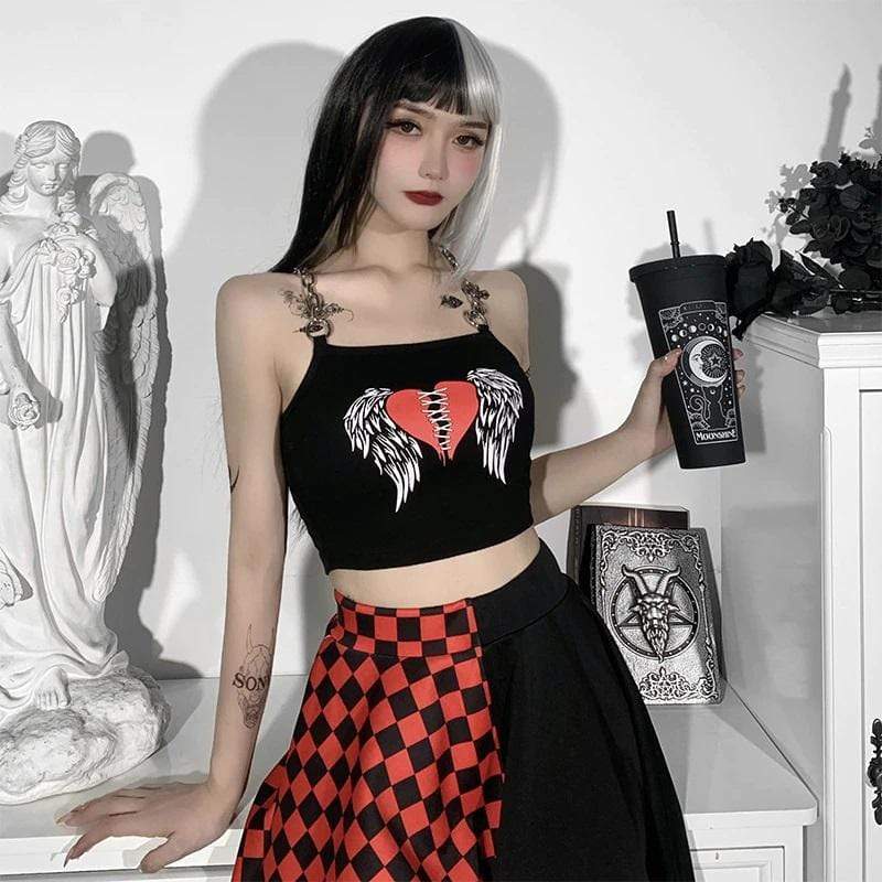 This crop top is made of sexxxy broadcloth and features a printed stitched heart with wings and statement chain shoulder straps.?Put a harness on top, your fave skirt, and some platforms and you're ready to go!